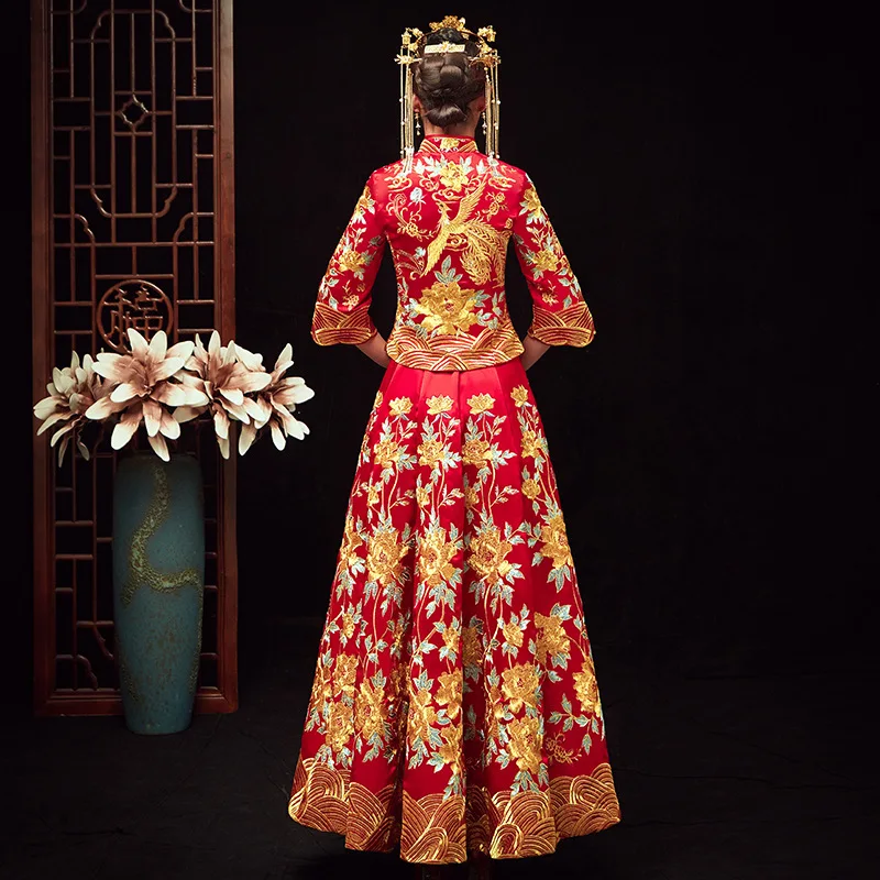 - Product Name: Bride Dress Wedding Dress Retro Dress Chinese Cheongsam Dress The Bride Toast Clothing Long Section